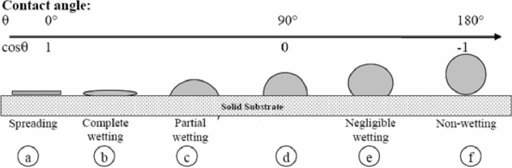 ภาพที่ 2 เปรียบเทียบขนาดของมุมตกกระทบของหยดน้ำและวัสดุ